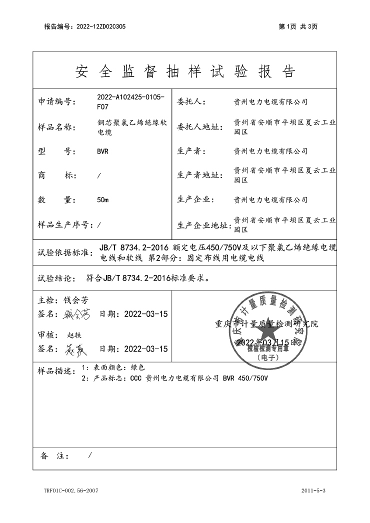 下一篇:聚氯乙烯絕緣聚氯乙烯護套電力電纜(銅芯聚氯乙烯絕緣聚氯乙烯護套電力電纜)國抽檢驗報告